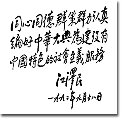 1992年9月,江泽民为《中华大典》题词:“同心同德,群策群力,认真编好《中华大典》,为建设有中国特色的社会主义服务。”