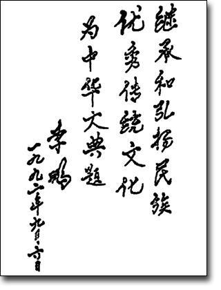 1992年9月,李鹏为《中华大典》题词:“继承和弘扬民族优秀传统文化。”