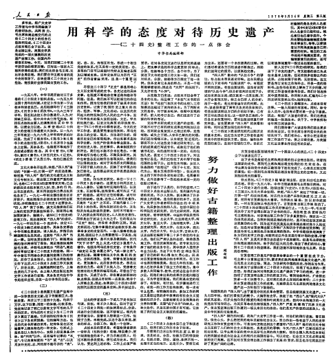 1978年5月24日,为庆祝“二十四史”全部出版,《人民日报》刊载了中华书局编辑部《用科学的态度对待历史遗产》和顾颉刚《努力做好古籍整理出版工作》的文章。