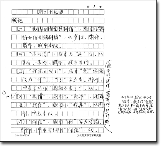 人民文学出版社出版的俞平伯《红楼梦八十回校本》手稿及编辑加工意见。