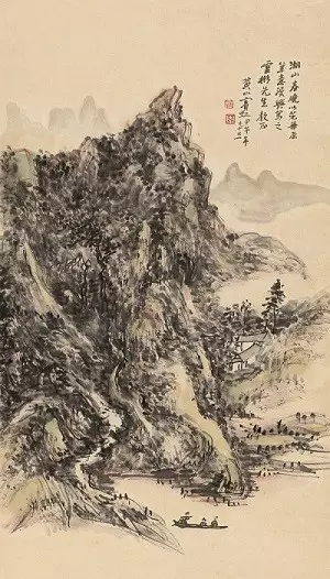 宋云彬所藏黄宾虹作品两件,一为《白沙诗意图》,水墨纸本,题识曰:“西风吹冷峡山云,红叶清溪点缀新。惟有白头溪里影,至今犹戴玉台巾。陈白沙诗,黄宾虹画。”钤印:宾虹、黄宾公。另一件为《湖山春晓图》,设色纸本,题识曰:“湖山春晓。以范华原笔意漫兴写之。云彬先生教正。黄山宾虹,甲午年九十又一。”钤印:黄宾虹、肖形印。甲午为一九五四年。