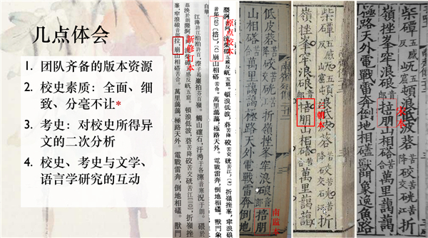 周文俊对本次修订工作的一些基本方法与思路作了简要介绍。他提到《南齐书》修订团队在合理运用陈垣先生“四校法”(对校、本校、他校、理校)的同时,亦重视辨析文本自身的“史源”(史料来源)。他特别指出该方法思路的形成,获益于孟彦弘先生《本校与他校释例——古籍校勘中的“史源”问题》一文(载《隋唐辽宋金元史论丛》,2013年)。“史源”辨析和“四校法”结合,是本次修订工作的特点之一。