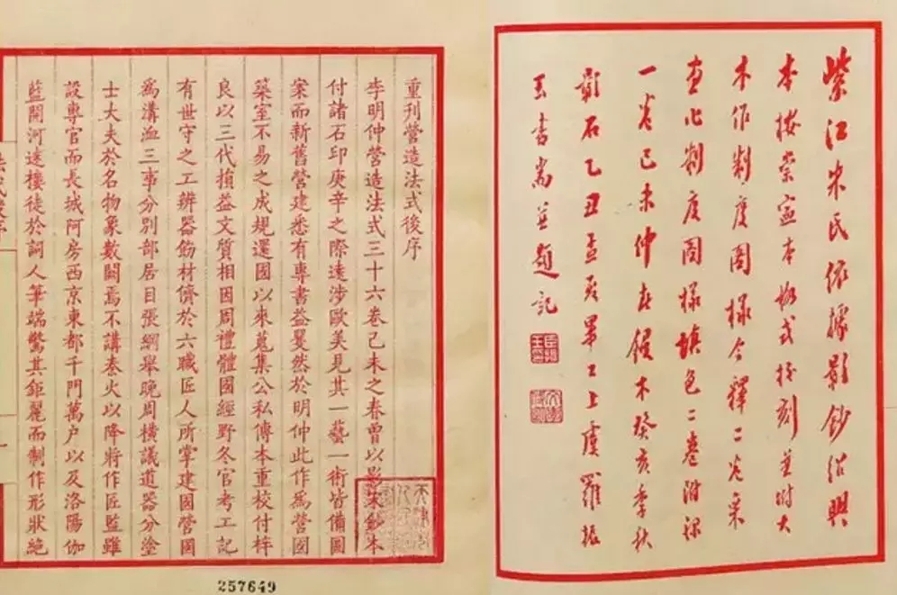 由于前期还要打理工作上的各种事务,力求完美的陶湘刻书效率不高。宣统二年(一九一〇)夏,他刻成《昭代名人尺牍续集》二十四卷。江阴金武祥在序中写道:“石刻名匠罕观,勾勒稍未致精,即有貌合神离之弊。近日发明石影秘法为古人传真惟妙惟肖,转胜石刻。吾乡涉园主人博习古今,多识海内旧家名辈,遍征所藏编为续集影印流布。”在收藏上一直对陶湘鼎力相助的著名学者缪荃孙先生,于民国二年(一九一三),将自己珍藏的明嘉靖间王良栋抄宋本《儒学警悟》七集交给陶湘刊刻。《儒学警悟》实为丛书之始,流行极少,所以缪老希望“详校撰序授湘付梓”,以便更多学者有幸观之。直至一九一八年冬,缪荃孙才完成了此书的校勘工作,并于第二年的中秋前三日将序言手授陶湘,不幸的是三个月后缪老便撒手人寰。一九二二年,这套《儒学警悟》终于正式刻印完工,不负缪老的临终重托。此外,他从一九一四年影刻宋咸淳本左氏《百川学海》真本百种十集,一九三〇年告成。一九二三年开刻仿宋崇宁本校勘宋代李明仲《营造法式》,一九二五年告成。
