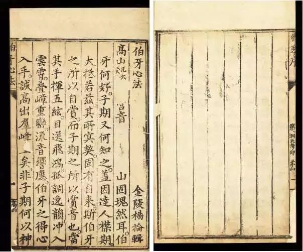 《伯牙心法》为明杨抡所辑,收入曲谱二十九首。杨抡,亦为明后期古琴江派代表人物之一,字文甫,又字鹤浦(或为号),明南京江宁人,万历(1573—1620)、天启(1621—1627)年间重要琴家,“生平嗜一琴,为人敏而慎,谦逊少欲”。著有《太古遗音》《伯牙心法》两种琴谱。