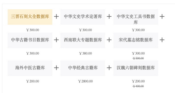 目前已上线专题库“宋代墓志铭数据库”“三晋石刻大全数据库”“汉魏六朝碑刻数据库”“唐代墓志铭数据库”等。其中“宋代墓志铭数据库”由李伟国主编,全面收集、整合宋代各类墓志文献8800篇;“三晋石刻大全数据库”由刘泽民、李玉明等主编,共收录17242篇;“汉魏六朝碑刻数据库”由毛远明著,以《汉魏六朝碑刻集释》为基础,全面收集碑碣2466种,制作成拓片图录3000余幅;“唐代墓志铭数据库”是由彭兴林主编,全面收集、整合唐代各类墓志文献12500篇以上。