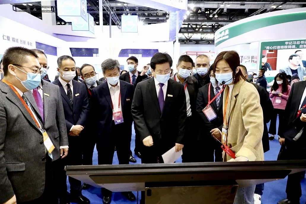 中宣部副部长张建春视察中国出版集团有限公司数博会展位,集团党组成员、股份公司董事、总经理李岩汇报集团在中华优秀传统文化数字化方面成果情况,中华书局古联公司工作人员现场介绍古籍知识服务平台“籍合网”。
