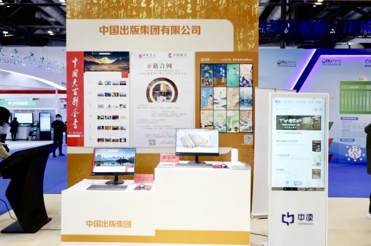 10月27日上午,第十一届中国数字出版博览会在北京国家国际会议中心开幕。本届数博会上,中国出版集团有限公司在展会特设的中华优秀传统文化数字化联合展区参展,通过产品静态展示和动态演示相结合的方式,展出集团近年来出版融合发展以及数字化、信息化方面的优秀成果。特别是以数据库、有声书、电子书、数字设备等多种融合形态,重点展示了集团在推动中华优秀传统文化创造性转化和创新性发展方面的实践和成果,包括《中国大百科全书》第三版网络版,中华书局古联公司建设的古籍知识服务平台“籍合网”,商务印书馆“语言资源知识服务平台《涵芬》APP”、“商务印书馆民国期刊总辑全文检索数据库平台”,三联书店《三联生活周刊》建设的“三联中读”平台,中图公司“5G新阅读”,中版文化公司“书袋阅读”,以及中版数媒公司“悦中医”知识服务平台、“一书一智界”融媒体平台等近20个融合出版平台和项目产品。