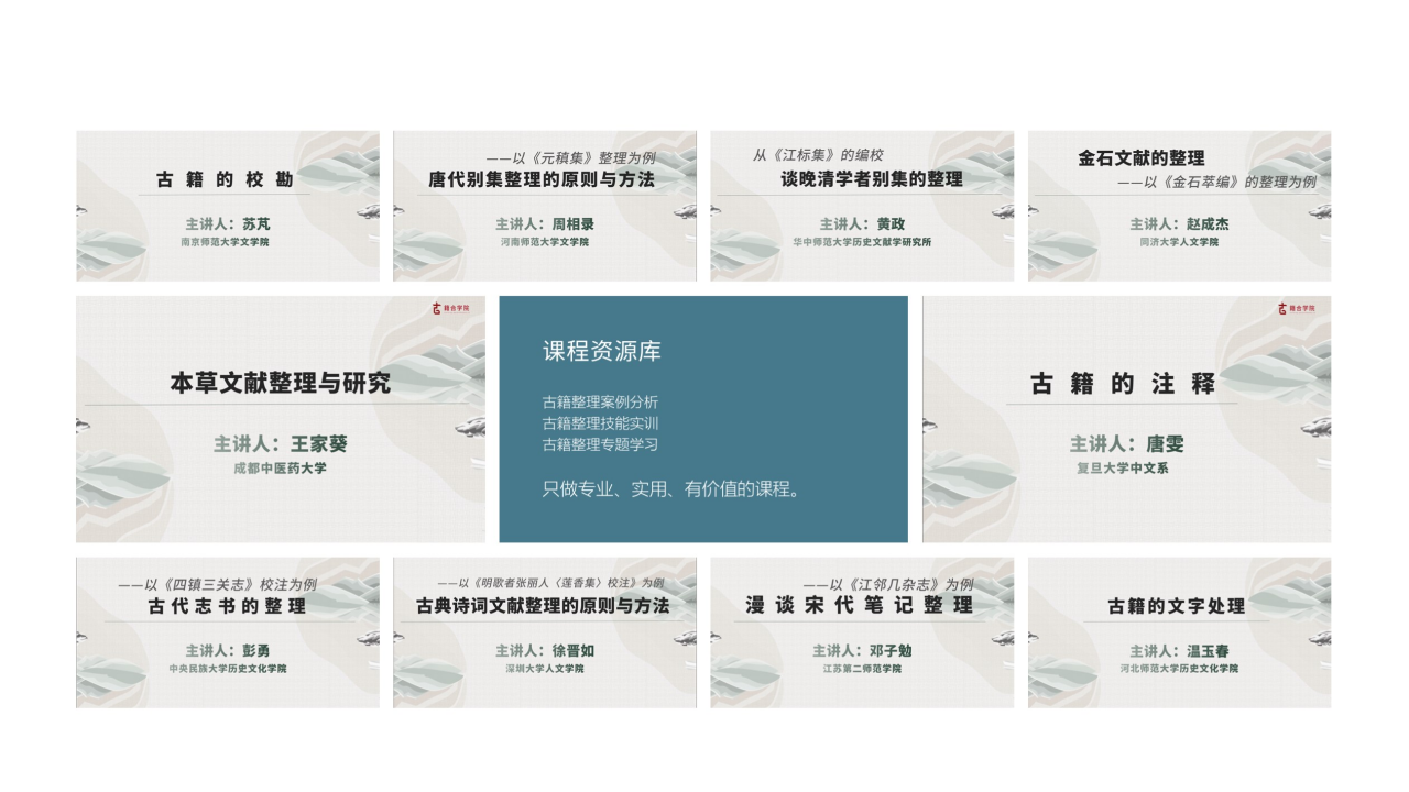 澎湃新闻了解到,中华书局在2020年启动了籍合学院项目,据承担项目的中华书局古联公司总经理洪涛介绍,项目主要聚焦于以下几个方面,首先是建设网络培训平台,建立在线课程资源库。目前籍合学院平台规划的课程包含古籍整理及出版经典案例分析、古籍整理及出版专项技能精讲、古籍整理及出版专题知识学习等。与籍合学院项目的合作的教师已达上百位,均为不同类型古籍文献整理工作中成绩卓著的学者,和古籍出版界经验丰富的编辑。“我们规划的课程目前主要集中在古籍整理和出版领域,未来打算逐步加入古籍数字化的课程,古籍保护领域还未涉足。”洪涛介绍。